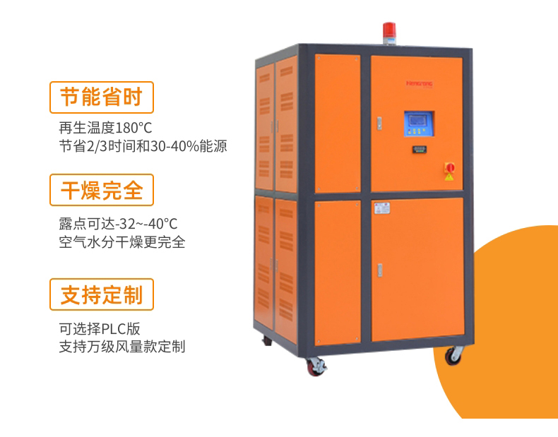 到-40℃以下,甚至更低的露點,且露點溫度穩(wěn)定,保證了成形塑料制品的優(yōu)質(zhì)與穩(wěn)定。全系列采用P.I.D.溫控系