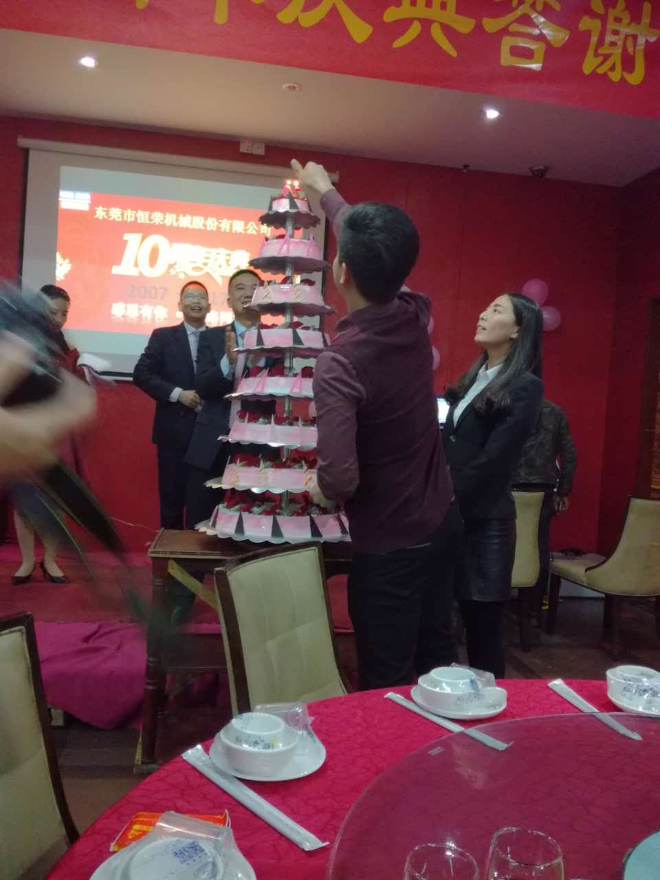 10年風雨滄桑,10年薪火相傳,自2007年誕生起,恒榮機械已走過了整整十周年。31日下午,我司以 “感恩相伴,一路同行” 為主題的建司10周年慶典隆重舉行。個供應商、員工及家人們等一同參與到了這場十年華誕盛典。當天下午,恒榮公司生產辦公樓內歡聲笑語,何總帶領著各供應商參觀了我們的工廠、留影,并一同前往我們的會場。